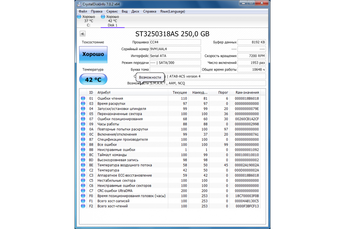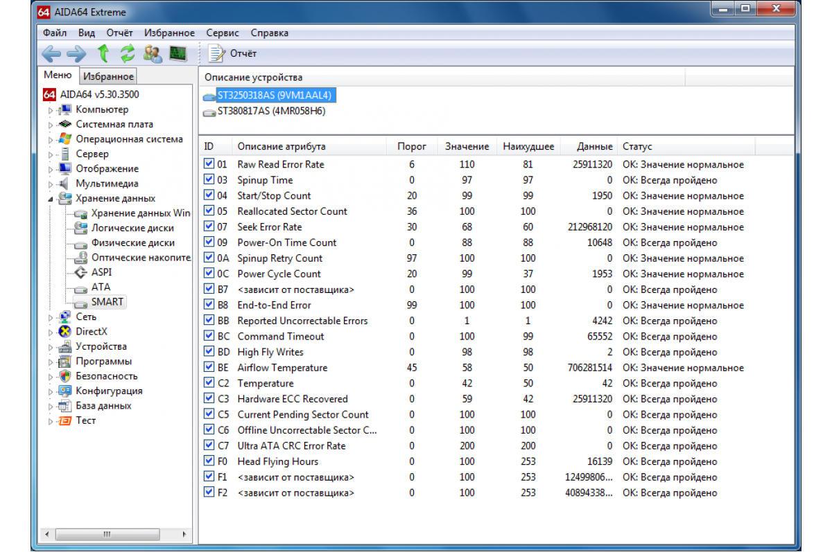 Поверхность жесткого диска проверена. Бэд-блоков нет, переназначенных секторов нет. S.M.A.R.T. и результаты теста прилагаются.